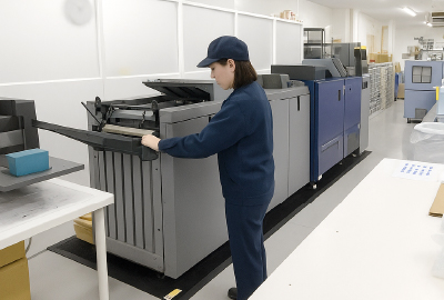 お客様から入稿いただいたデータをIllustratorを使って印刷用データに変換し、各印刷機にて印刷をするお仕事です。